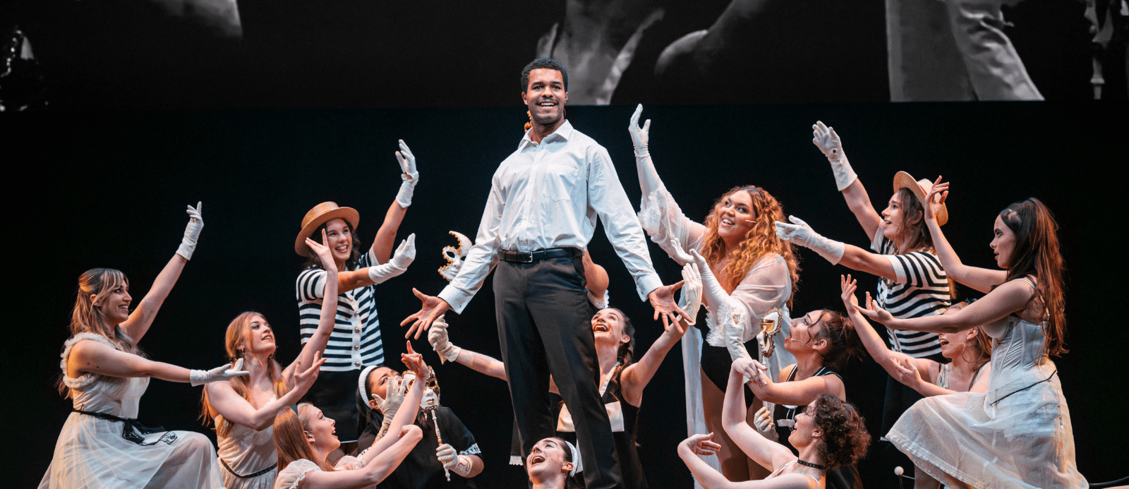 Nine is not structured like a conventional narrative musical. It moves rapidly through reality, memory, and fantasy, echoing Federico Fellini’s belief that the mind exists in these intersecting layers. Our production leans in to this idea, inviting the audience not just to watch Guido Contini spiralling, but to experience it viscerally.